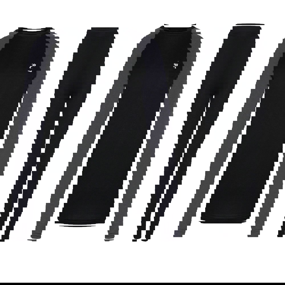 This base layer set includes one top and one pair of bottoms, finished in a two-tone design with logo detailing. The top has a crew neck and long raglan sleeves with contrast panels for a clean, sporty look.