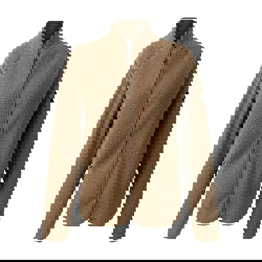 The Excursion fleece jacket from Dare 2B is made from borg, fleece and plush materials with a textured finish and recycled content. In Pine Bark, it has a plain look with logo detailing, making it easy to wear as a warm layer.