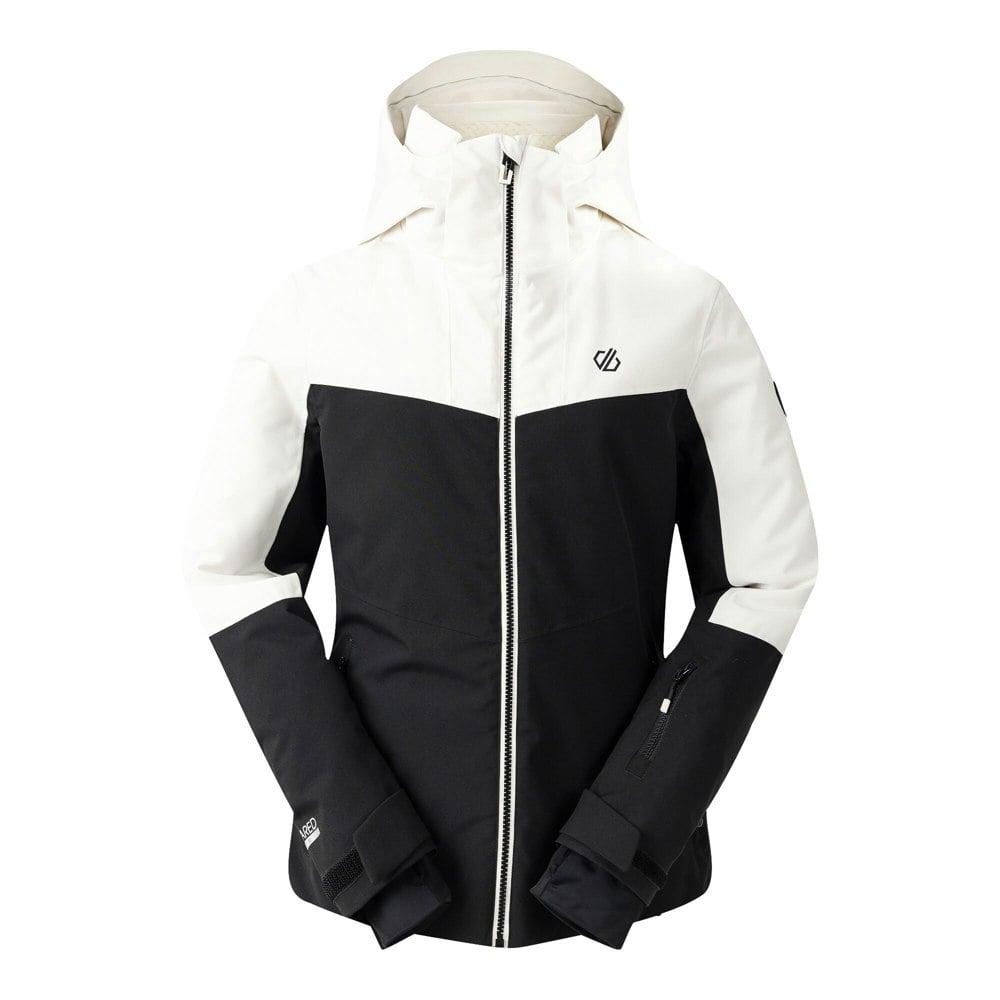 Built for ski wear, this Dare 2B women’s Iced jacket comes in Egret White/Black with a printed design and a hooded neckline. The stretch fabric is made from 100% recycled polyester and uses ARED 30/30 fabric technology with a durable water repellent finish. It is waterproof and breathable, with taped seams and a padded construction.