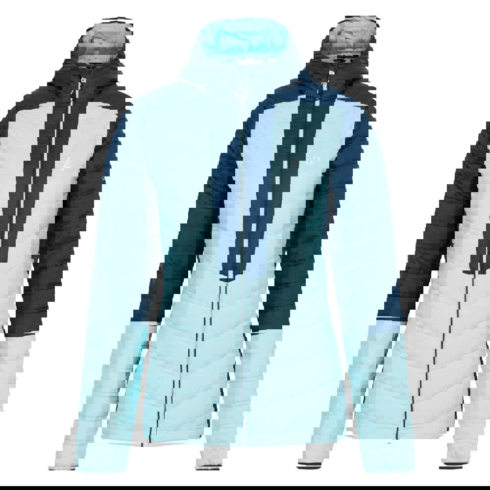 Dare 2B Lively padded jacket in Moonlight Denim/Water Ballet. Made from 100% recycled polyester, it uses a baffled ripstop material with Iloft Ecofill and a quilted finish. Contrast detailing and logo branding complete the design.
