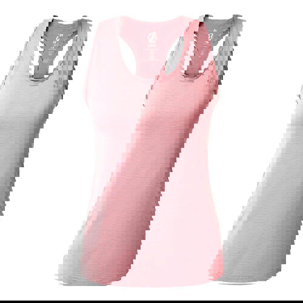 The Dare 2b Modernize II vest comes in Lilas with a plain design and a sleeveless cut. Made from a knitted Q-Wic material blend of 90% polyester and 10% elastane, it has a scoop neckline and a racerback style. A stretch fit supports ease of movement, making it suitable for active wear and layering.