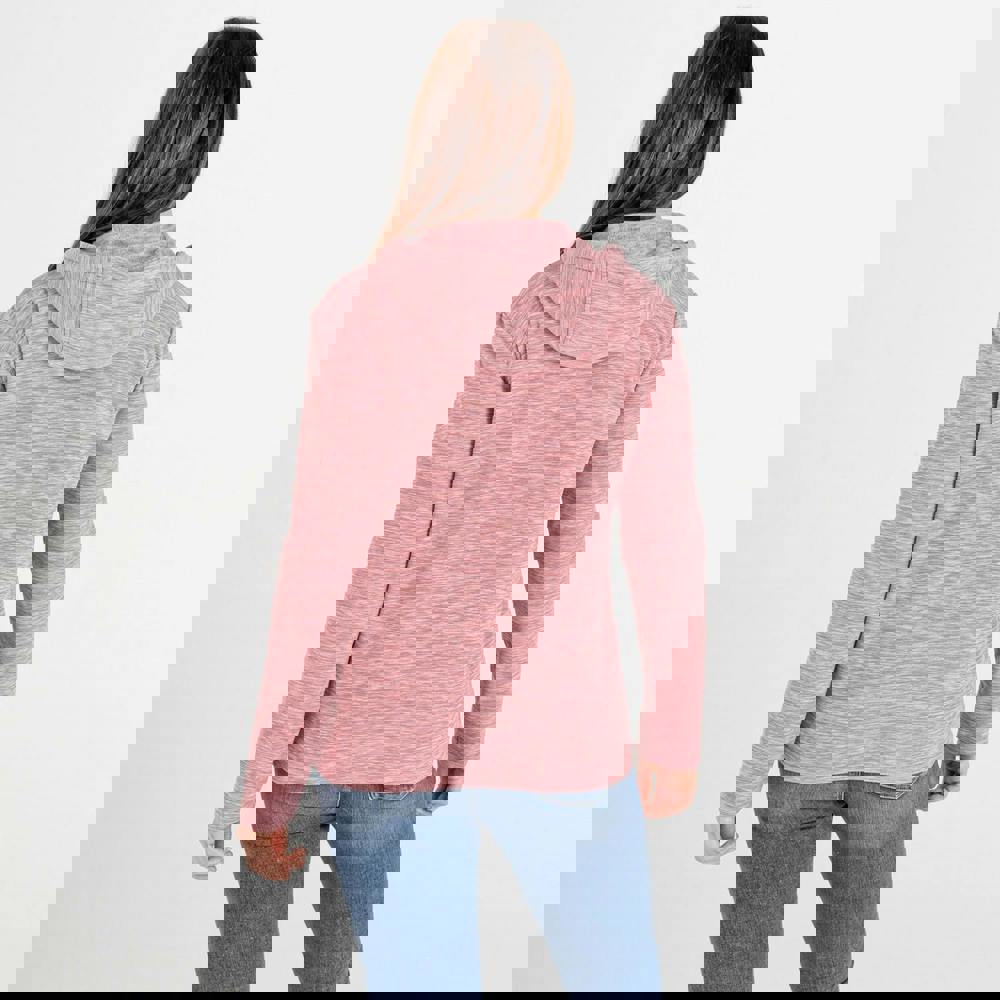 This half zip fleece top is made from 100% polyester with a knitted fleece construction. It comes in powder pink with a marl finish and logo detailing, finished with Swarovski crystals. A hooded neckline and drawcord hood provide an adjustable feel, while long sleeves keep the look classic and practical.