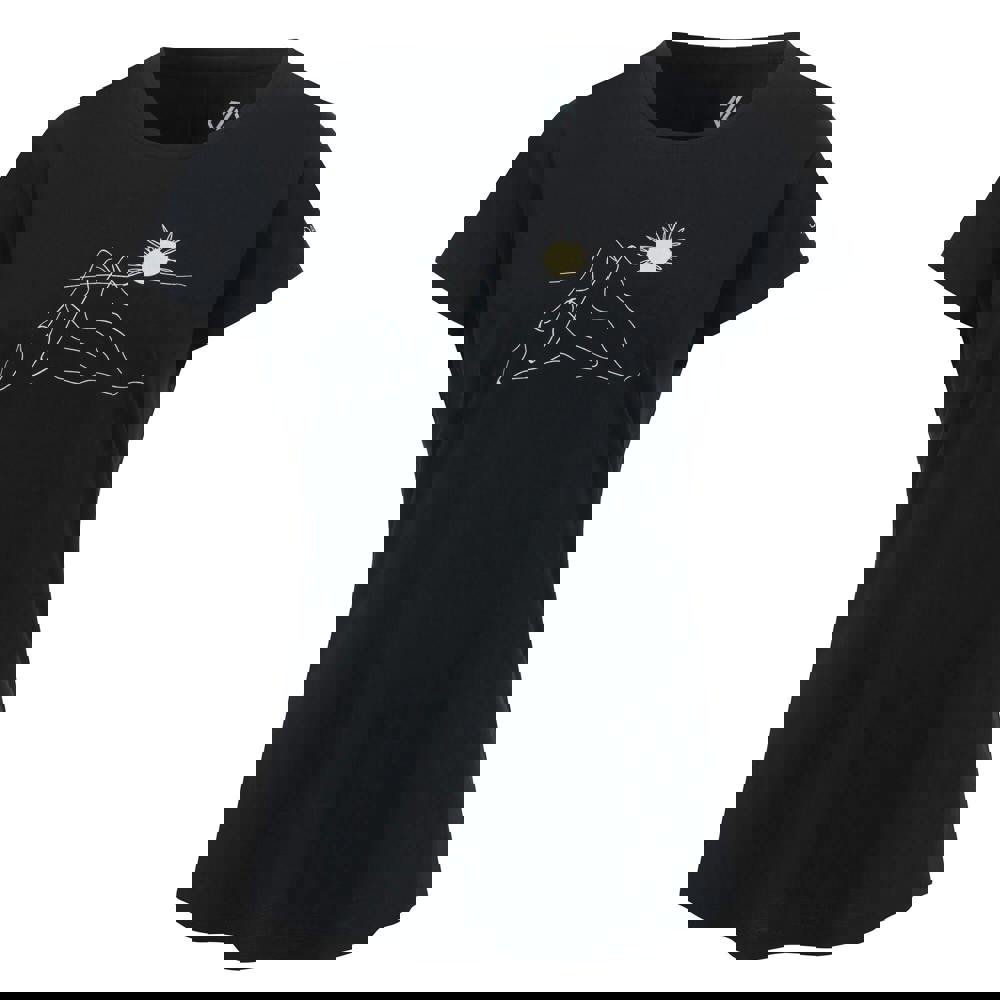 This short-sleeved T-shirt is made from 80% recycled polyester and 20% lyocell, finished with a soft-touch feel. It has a round neckline and a graphic print design combining a logo with mountain and sun details.