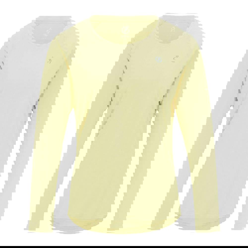The Serenity long-sleeved T-shirt from Dare 2B comes in wax yellow with a round neck and long sleeves. It is made from a blend of recycled polyester and lyocell, finished with logo and reflective detailing for a clean, modern look.