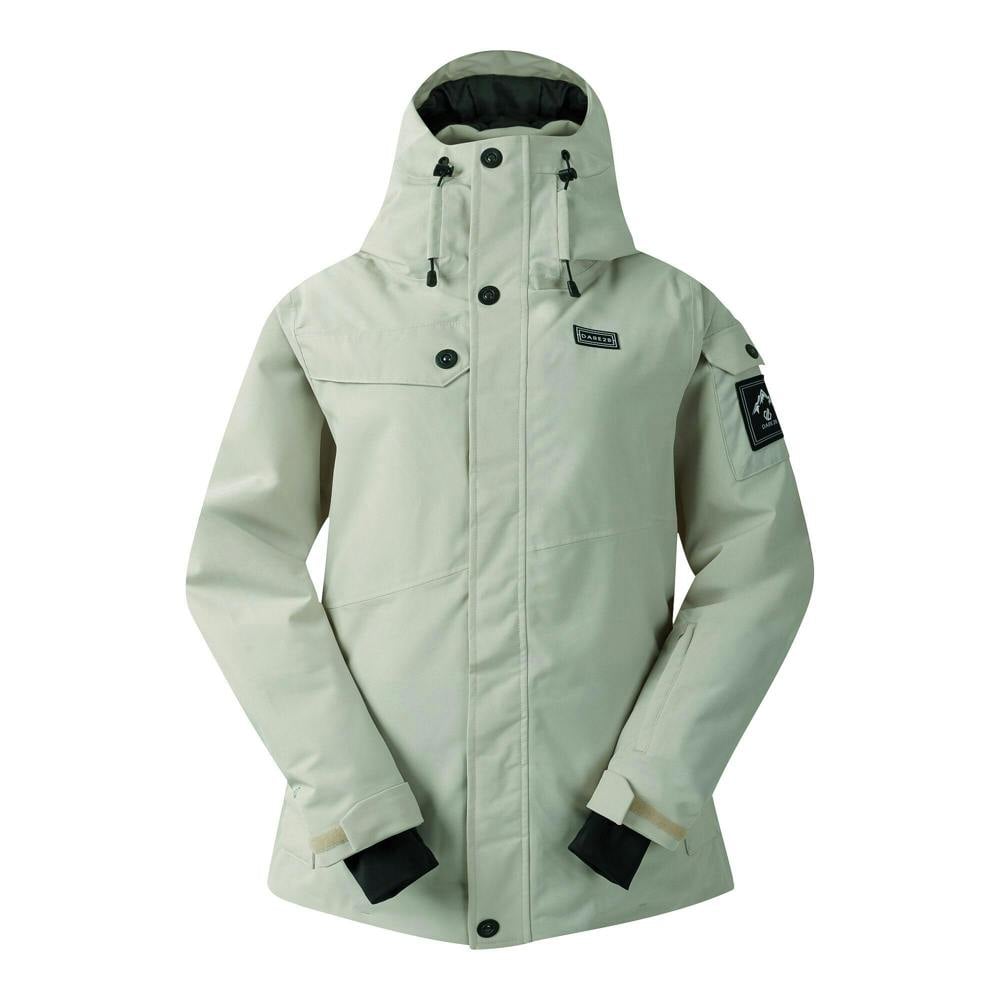 This women’s Ski Life jacket from Dare 2B is made from recycled stretch fabric with a dash print and logo detailing. It uses ARED 30/30 fabric technology and is breathable, durable, showerproof and waterproof, with a 30000g/m²/24hrs rating. Recycled insulated filling and a back lining in recycled polyester scrim add structure, while taped seams support a sealed finish.
