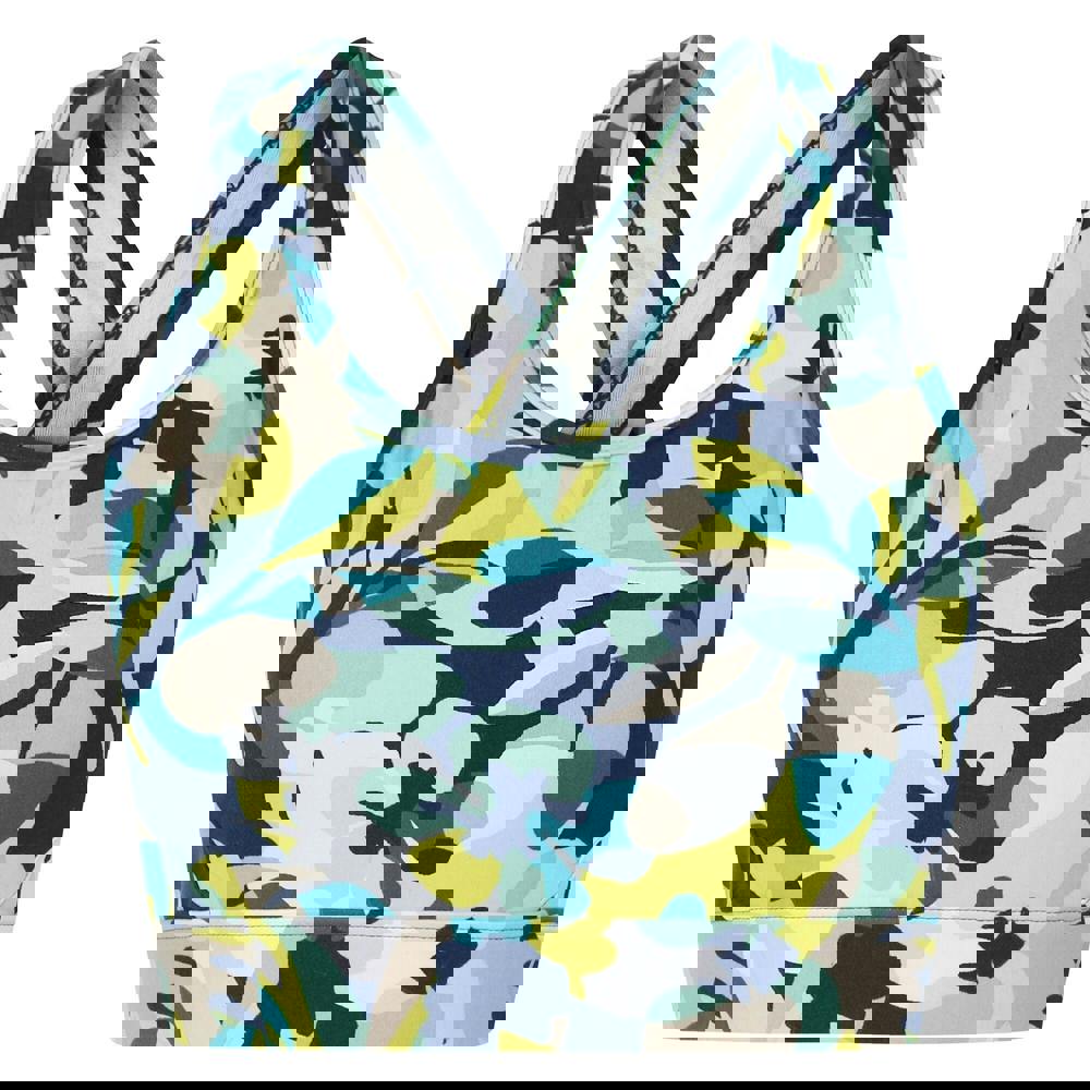 This sports bra is made from recycled, soft-touch material and finished with an all-over petal print and logo detail. A scoop neckline and racerback shape create a clean, sporty silhouette for training and active wear.