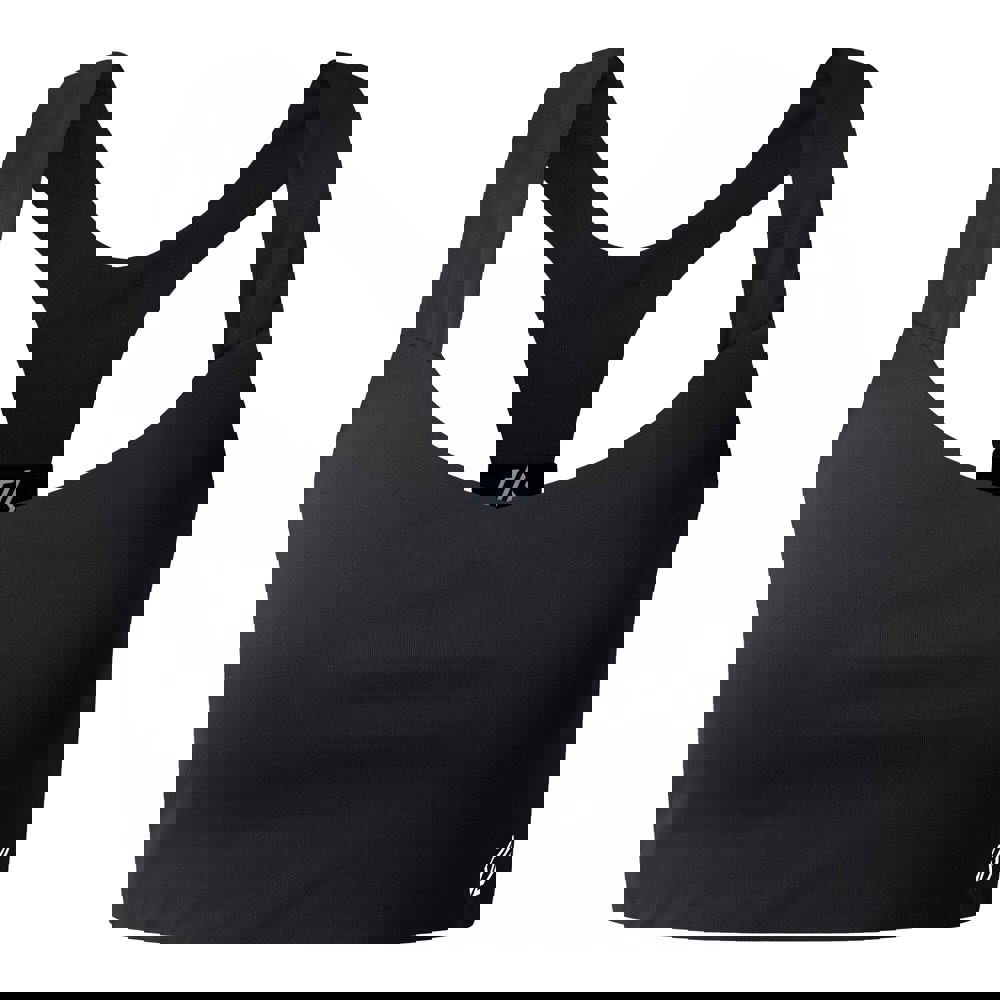 Made from 82% recycled polyester and 18% elastane, this sports bra is finished in black with a plain design and logo detail. A sweetheart neckline and seamless construction create a clean look, while the cross-strap back adds a distinctive finish.