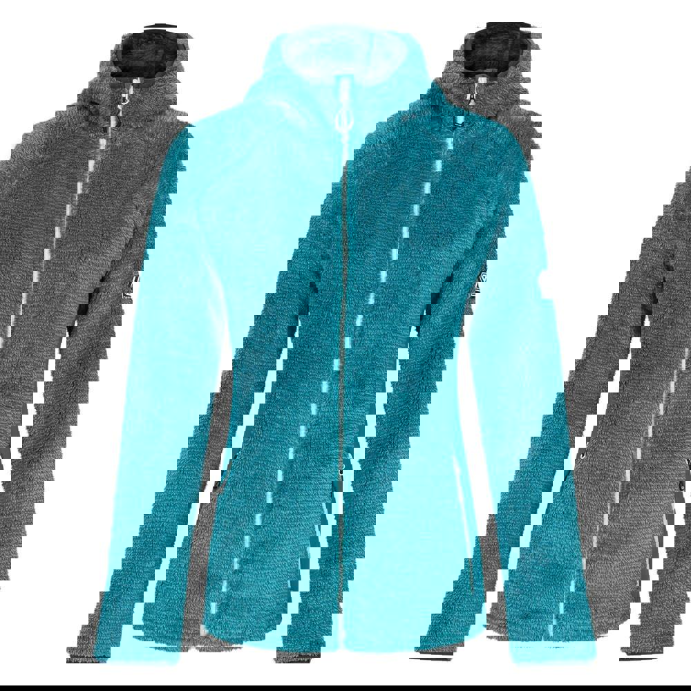 This midlayer is made from fleece with a fluffy, textured, soft-touch finish and Ilus Core Stretch. Recycled material is used. The design includes a logo and a full zip fastening for easy on and off.