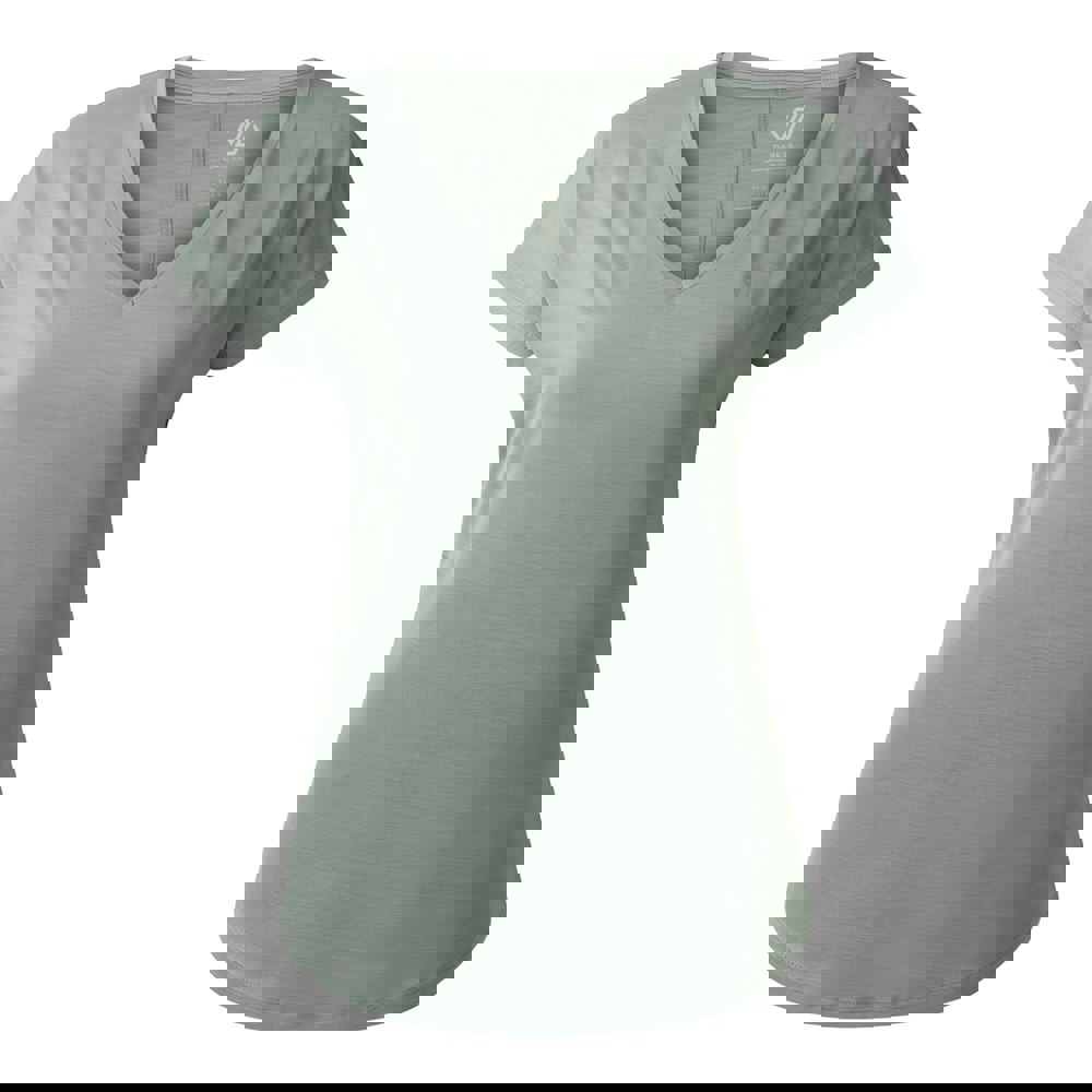 The Vigilant active T-shirt from Dare 2B is made from 90% polyester and 10% elastane, with Q-Wic stretch fabric. Finished in Glacier Green, it has a logo design and a V-neckline for a clean, sporty look. Short sleeves and drop arm holes create an easy shape for active wear.