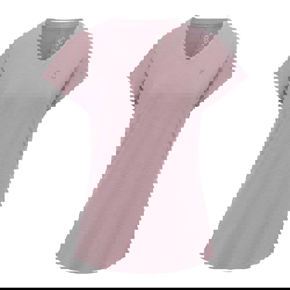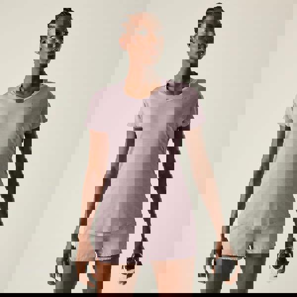 This active T-shirt is made from 90% polyester and 10% elastane, with Q-Wic stretch material and quick-dry technology. Finished in Mauve Shadow, it has a logo design and a V neck for a clean, sporty look.