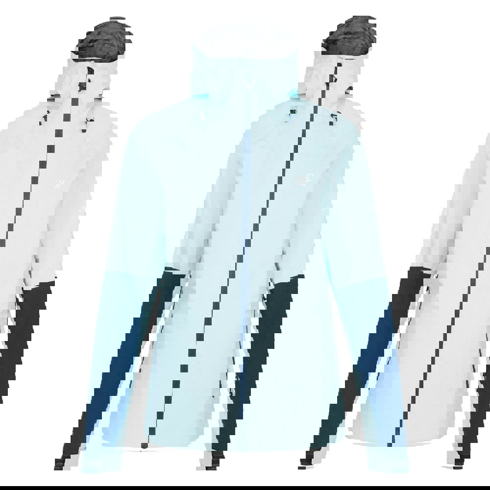 This women’s Assert waterproof jacket from Dare 2B is built for all-weather wear, with a stretch fabric and a contrast design finished with logo detailing. A full zip fastening is supported by an inner zip guard and chin guard, while taped seams and a rain channel help maintain a weather-ready construction.