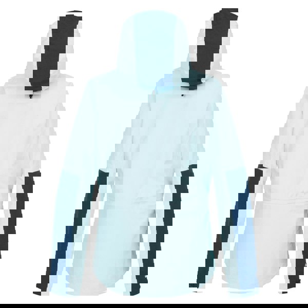 The hooded neckline includes a grown-on technical hood with a wired peak. Long sleeves are finished with adjustable cuffs, and the hem adjusts for a secure fit. Practical storage includes two lower zip pockets, a ski pass pocket, a mobile phone pocket and an internal pocket. Underarm ventilation zips add airflow control, and a detachable snowskirt with gel grip completes the ski-focused detailing.