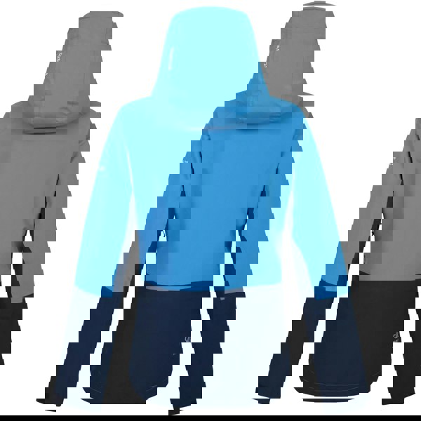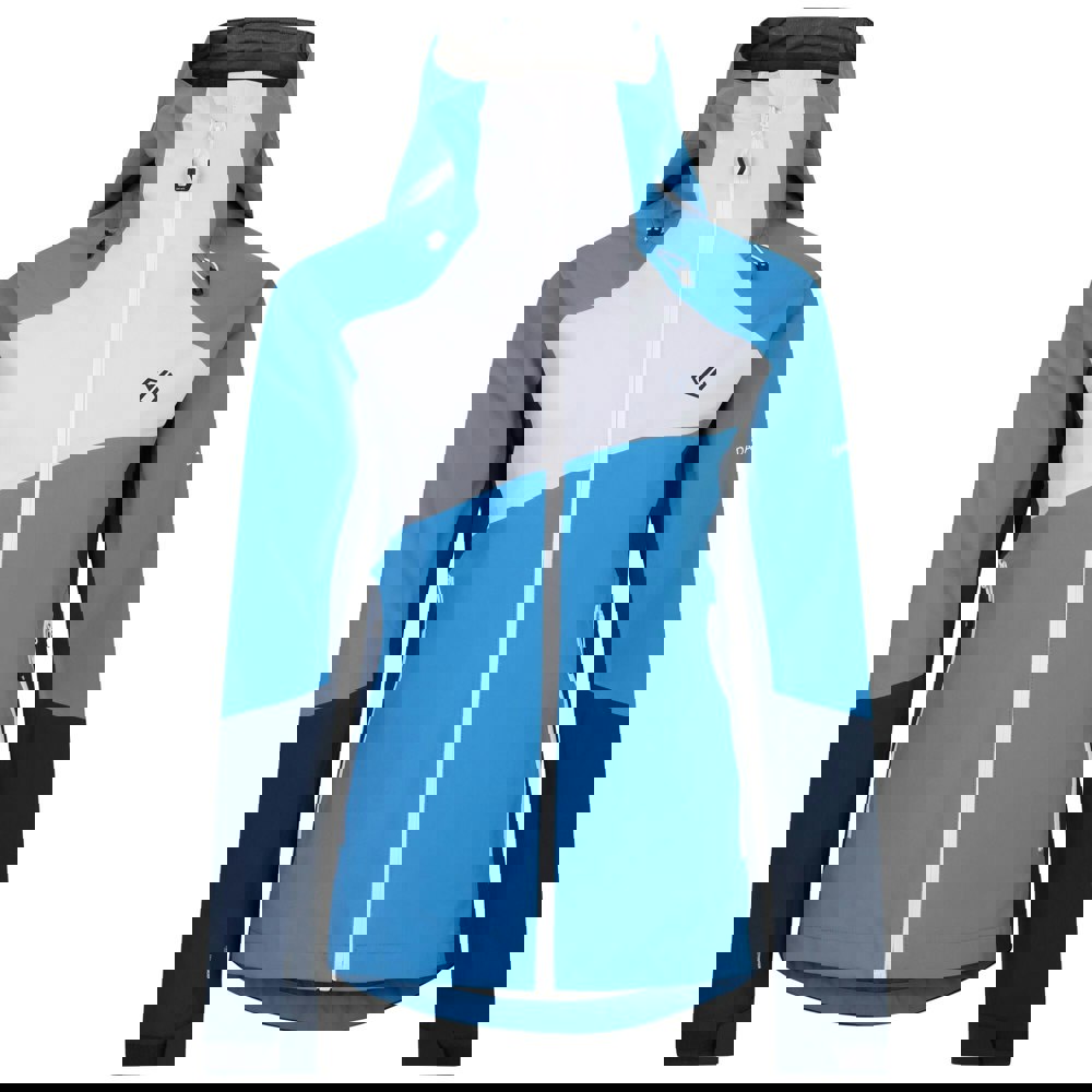 This softshell stretch ski jacket comes in a Swedish Blue and Moonlight Denim colour block design with logo detailing. Built with 2 layer fabric technology and AEP Kinematics, it combines Ared 20/15 performance with a breathable, durable construction. A DWR finish supports water repellence, while waterproof and windproof properties are paired with thermal performance for on-slope wear.