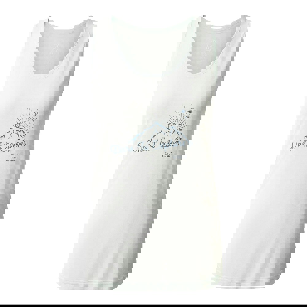 This sleeveless vest top is made from 100% bamboo fibres with a soft-touch finish and added stretch. It has a round neckline and a mountain, sun and text design, offering a clean look for everyday wear.