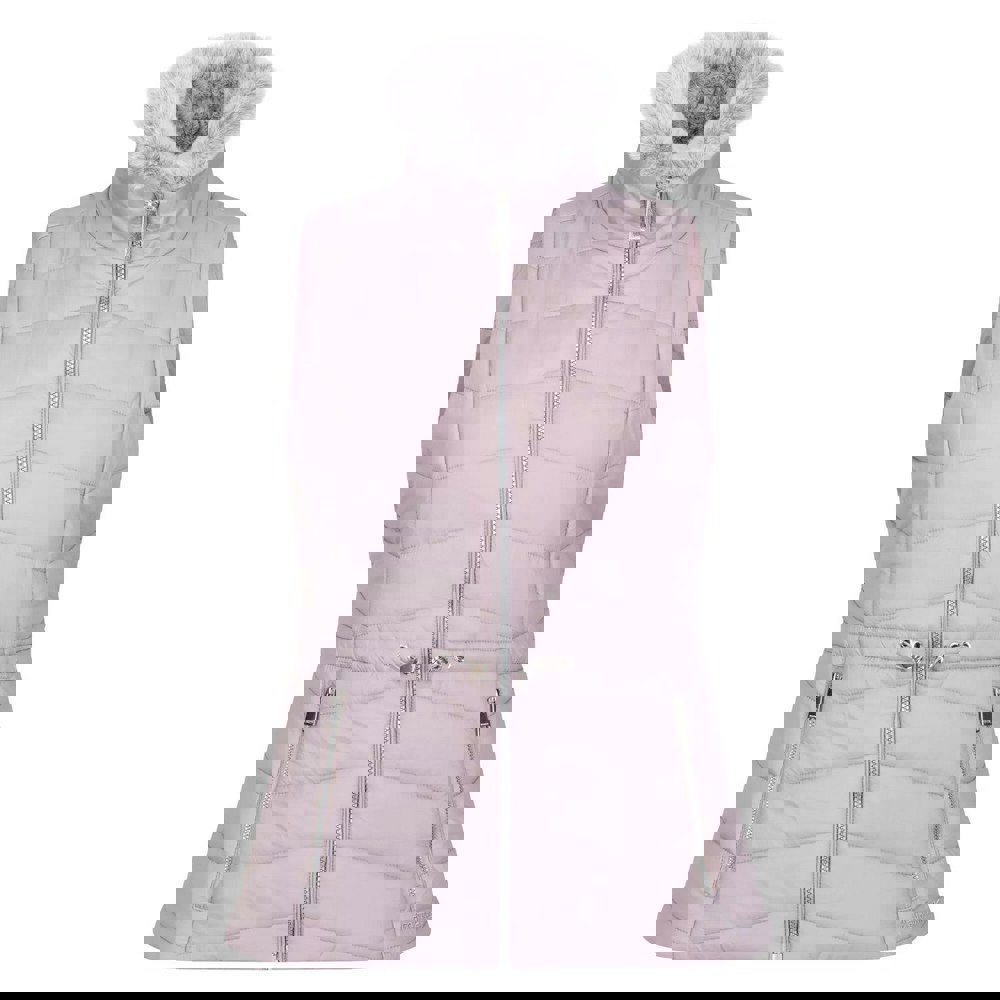 A high-neck silhouette is paired with a faux fur collar for added coverage. The sleeveless cut layers neatly over long-sleeve tops, while a full zip fastening keeps the front clean and simple. Two zipped front pockets provide secure storage, and a drawcord waist allows the shape to be adjusted.