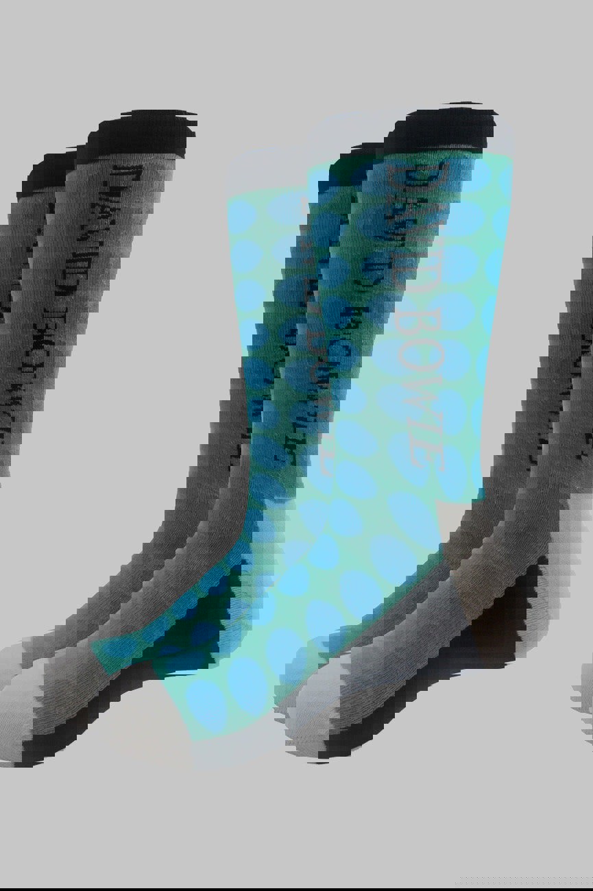 Official licensed David Bowie Ankle Socks featuring the 'Circles Pattern' design motif. This high quality hosiery is available in a blue colourway. High quality all-over pattern woven socks. UK adult shoe sizes approx. 7 - 11 (EUR Shoe size 40 - 45 and US Men's Shoe Size 8 - 12).