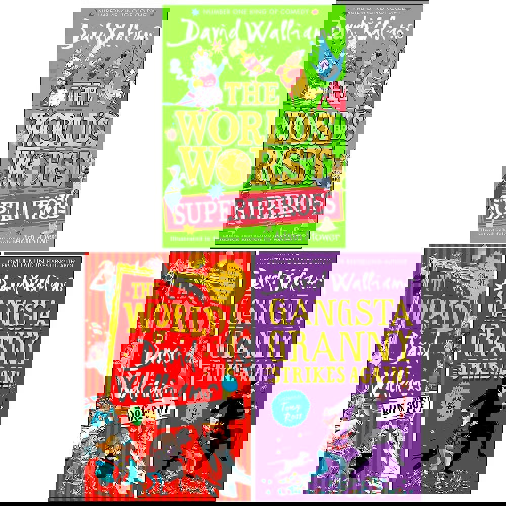 This three-book David Walliams collection brings together a hardback story alongside two paperbacks, combining fiction and an illustrated companion-style title. The set includes The World’s Worst Superheroes, The World of David Walliams Book of Stuff and Gangsta Granny Strikes Again!.