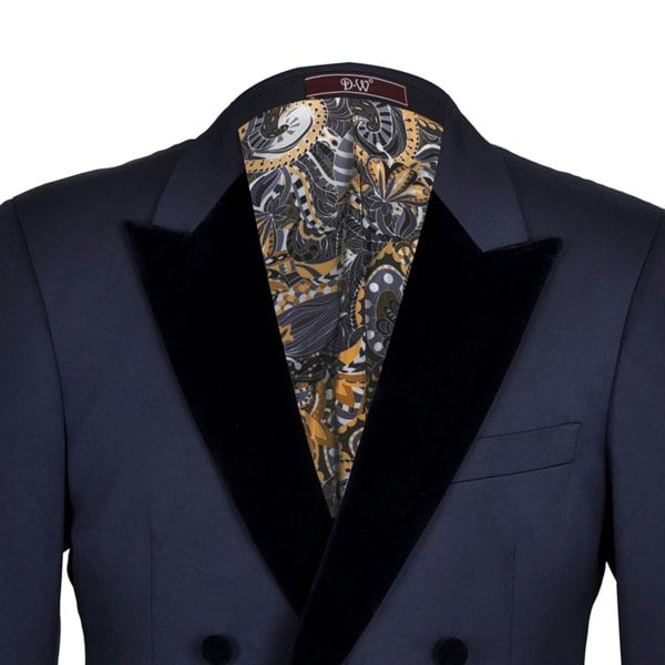 Elevate your evening attire with the Alfredo Cropped Double Breasted Velvet Peak Lapel Tuxedo, a masterful blend of contemporary tailoring and classic sophistication.