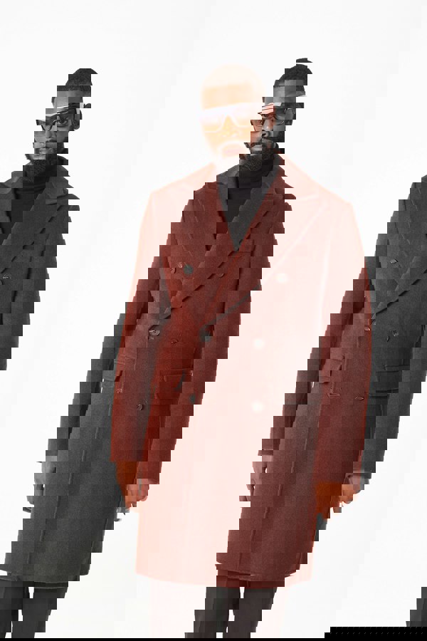 David WeJ DW Signature Double Breasted Wool Overcoat - Brown