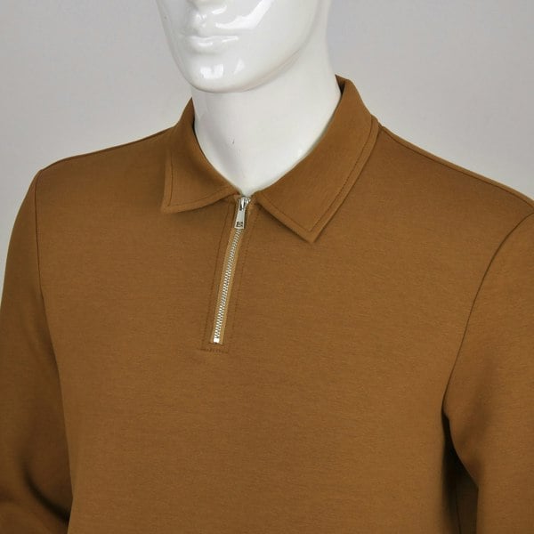 David WeJ Enzo Cotton Zip Polo - Coffee