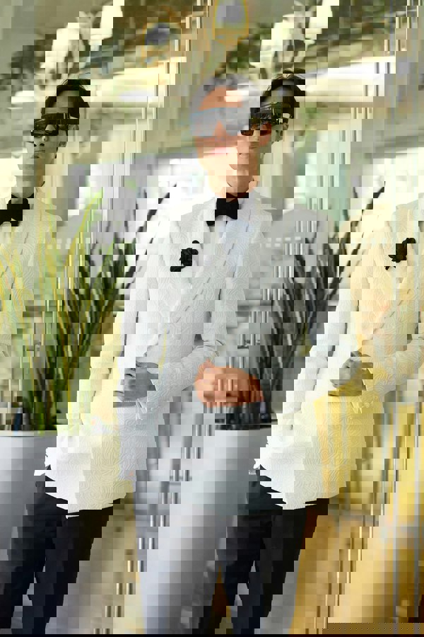 David WeJ Kensington Double Breasted Shawl Lapel Jacquard - Ivory