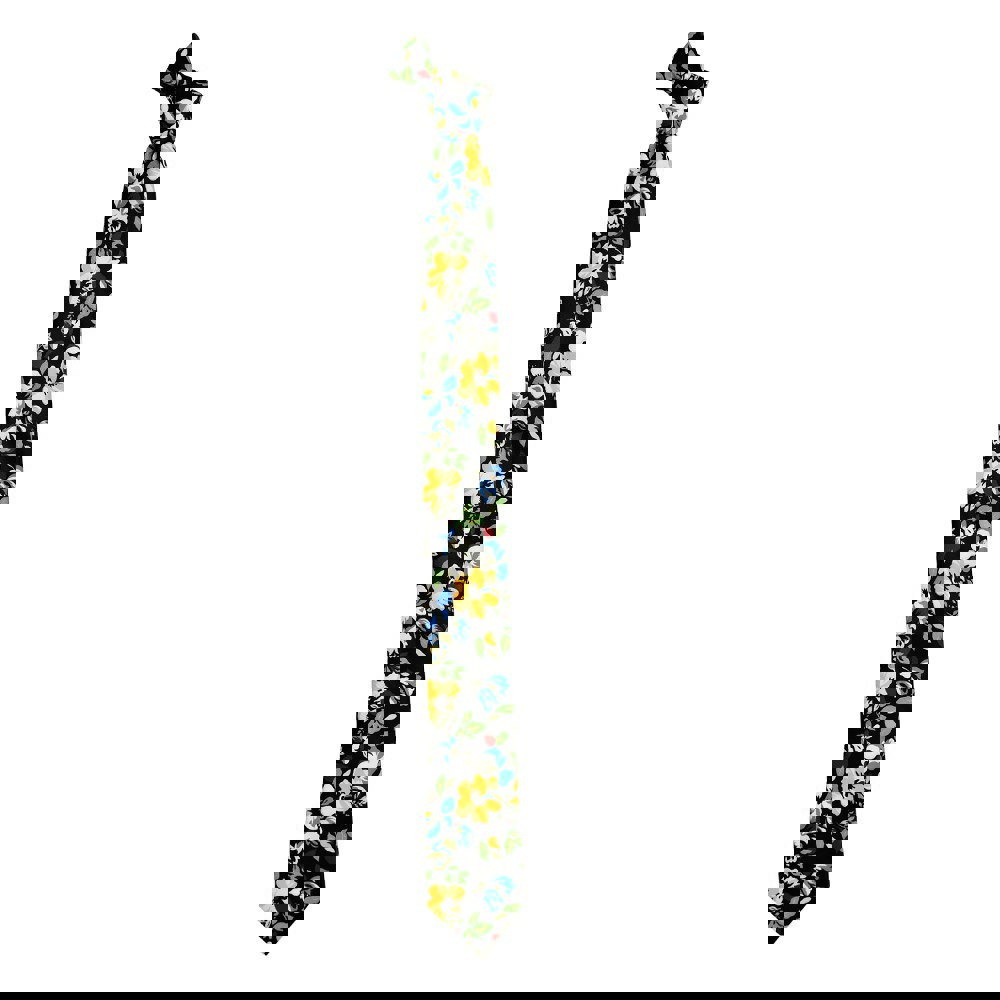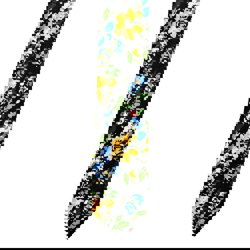 Black Yellow Large Flower Print Tie