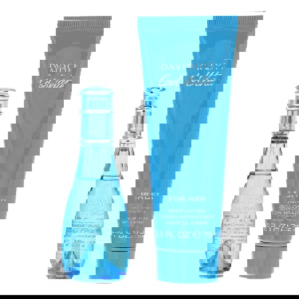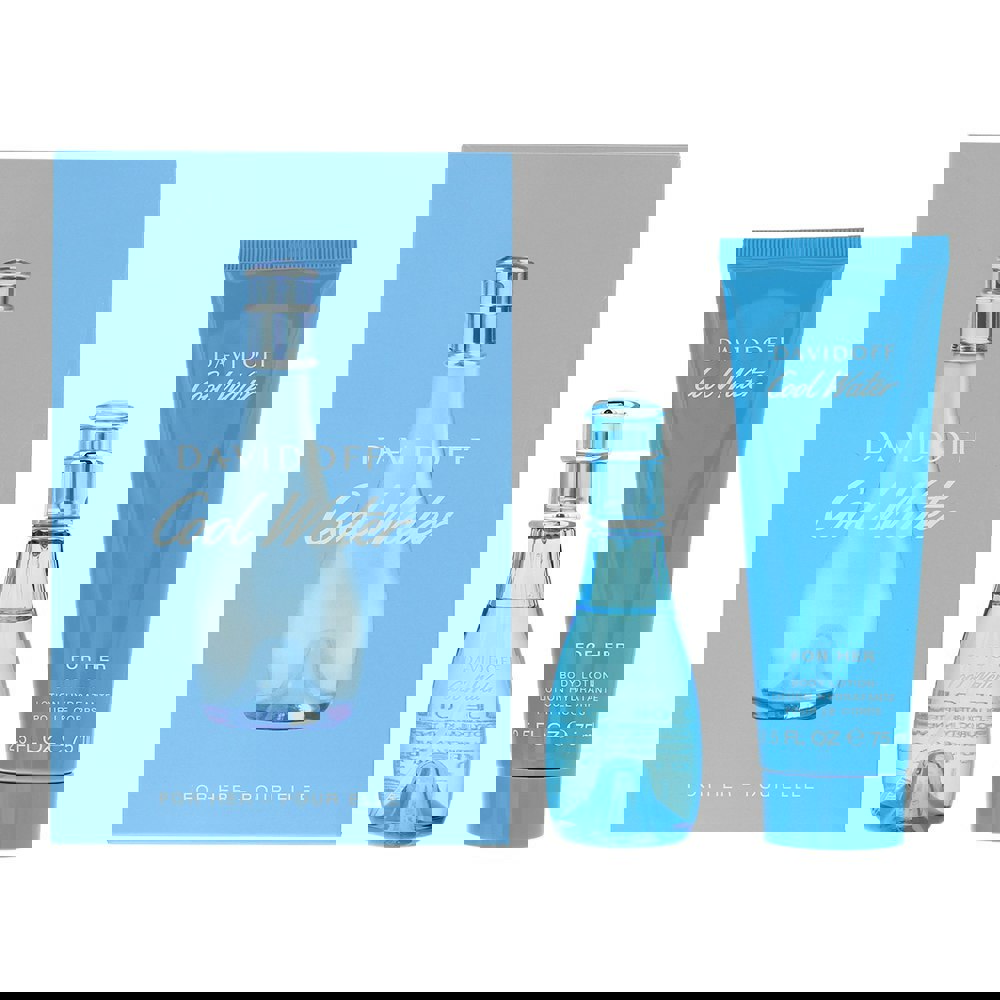Cool Water Woman Gift Set by Davidoff includes a 30ml Eau de Toilette and a 75ml Body Lotion, capturing the essence of the iconic fruity floral aquatic fragrance