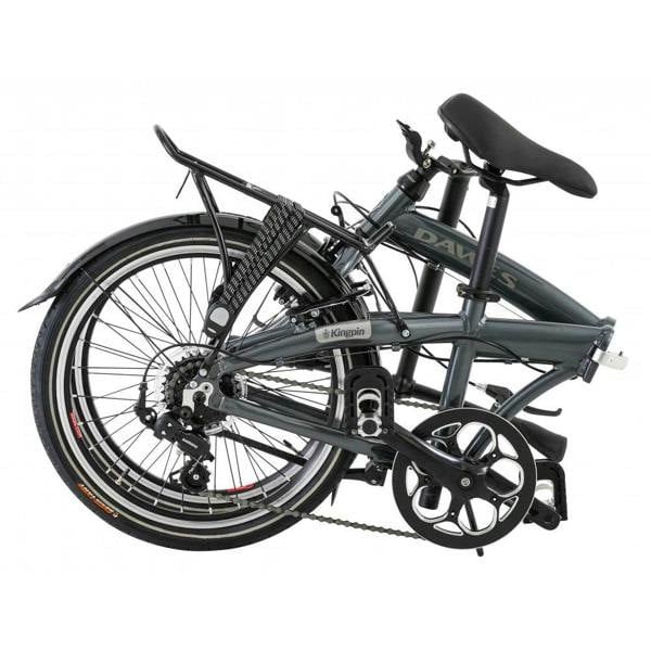 The Kingpin is the longstanding, best selling folding bike in the Dawes range. This year it has been given a makeover with a new paint job and some welcome component upgrades. The alloy frame includes the 3 point folding mechanism and there’s a quick release handlebar, telescopic handlepost and frame closure magnets ensuring the bike stays neatly folded. All this is finished off with a 7 speed Shimano drive train, strong double wall alloy rims, Schwalbe Marathon Racer tyres, inflator, kickstand and mudguards. You can rest assured that your ride will be fast and smooth.