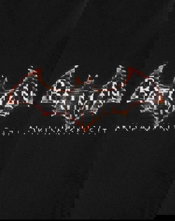 The logo is seen with the classic Batman symbol in black with a fiery tinged edge alongside Arkham Knight in crisp lettering.