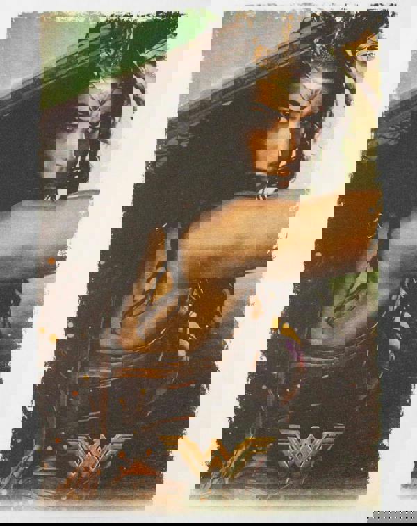Packed with detail and colour, the Wonder Woman logo is featured at the bottom of the design while the print features overall distressed edges, completing the look