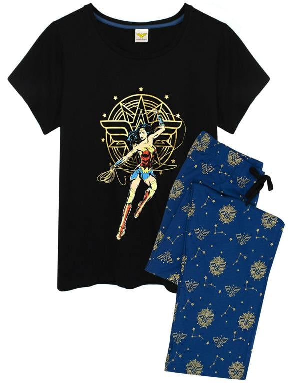 Get superhero ready at bedtime to battle against Maxwell Lord and the Cheetah with these glowing Wonder Woman pyjamas for women, available with short or long pyjamas bottom options