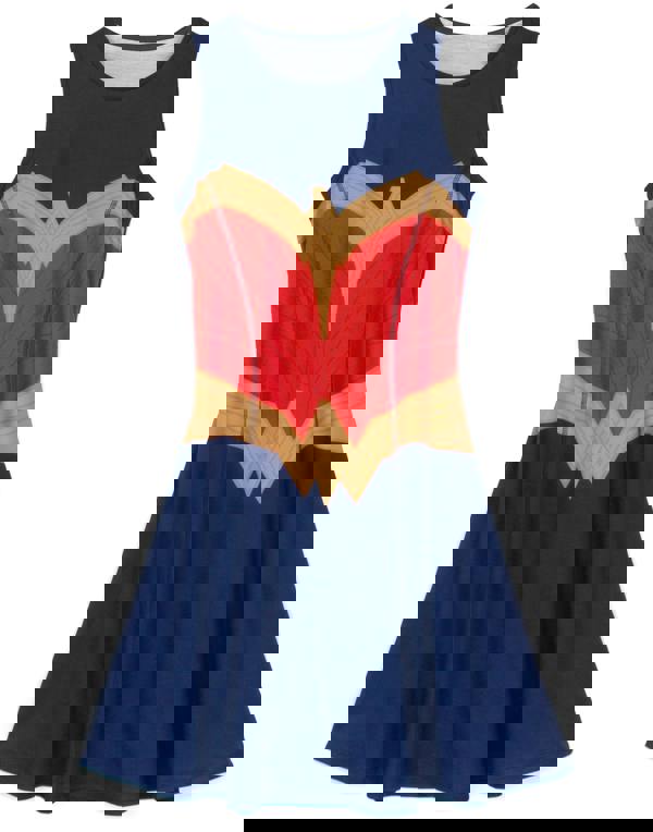 The Wonder Woman outfits are perfect for Comic Con events, fancy dress parties, gifts, and everyday wear! Inspired by the iconic DC Comics superhero, the dresses are packed full of cool detail and are a must-have addition to any Wonder Woman fan's collection! The red women's dress is inspired by the retro Wonder Woman outfit, featuring the trademark W logo across the chest of the garment in a standout metallic golden ink, outlined in crisp black