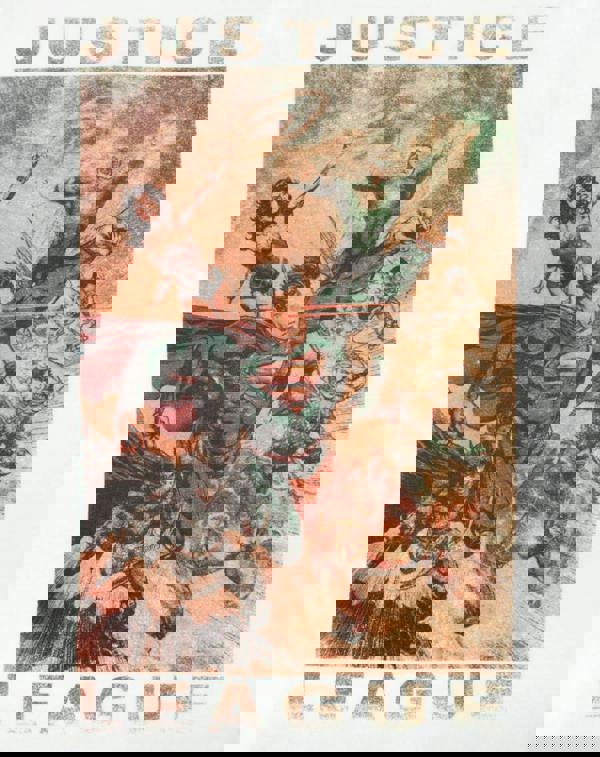 The print across the front of the tee sees the classic lineup of the superhero team: Superman, Batman, Wonder Woman, Green Lantern, The Flash, and Cyborg are seen leaping into action in a cool, colourful panel print