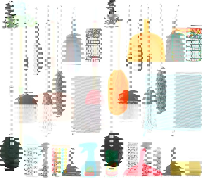 Household Cleaning Play Set with Dinosaur Stand – Pretend Play for Kids