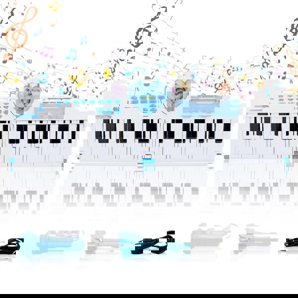 Equipped with multiple function buttons including tone switch, rhythm, volume, and play modes – allowing kids to experiment with different sounds and styles.