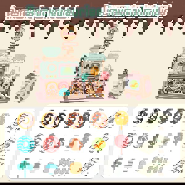 Perfect Gift: The electronic pretend donut shop toy set is suitable for ages 3 years and up. Role play, educational toy, sensory toy, early development, kids’ birthday present, party gifts, Christmas, rewards and more.