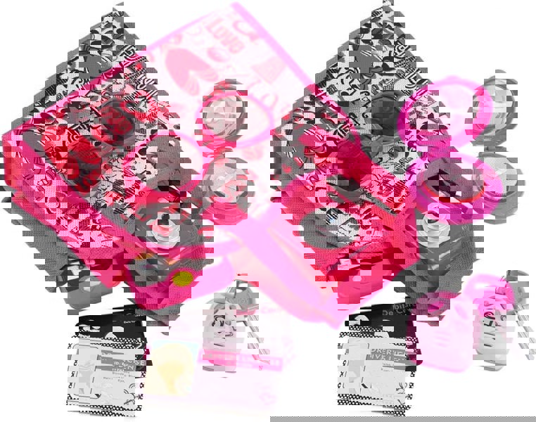Features: Contains a variety of accessories: pretend makeup, glamorous sunglasses, a handbag, toy camera, and a toy phone. Built-in light and sound functions—brilliant for your little beauty guru.