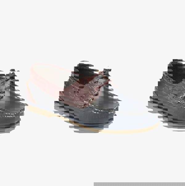 DEK RIVER Mens Leather Moccasin Boat Shoes Navy Blue/Brown