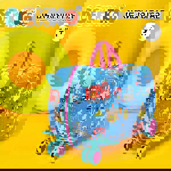 Compact enough for carry-on requirements yet roomy enough for extended weekends this charming kids ride on suitcase blends fun function and freedom. With a cheerful exterior and child-friendly features it's the perfect rolling travel buddy that helps kids feel grown-up and excited about packing for their next adventure.