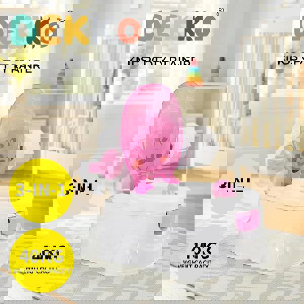 The Dekko kids potty seat trainer provides realistic toilet elements mixed with fun and encouragement for your budding baby. This children potty trainer is designed with two stages of use: you can place the full potty on the floor for beginner toddler toilet training and as your child transitions the seat and lid can be removed and attached to a standard toilet seat. With its thoughtful design including a retractable toilet tissue holder your child will feel all grown up.