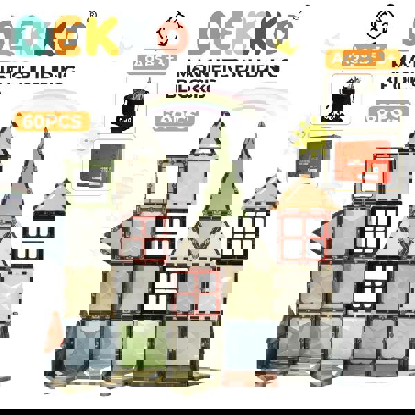 Inspire creativity and learning with our 60PCS Magnetic Building Blocks Set! Designed with strong magnets and a cross-fixation structure these colourful tiles connect firmly to form both flat puzzles and 3D models. Kids can freely build animals houses or geometric shapes while developing spatial imagination and problem-solving skills. Made from safe durable ABS plastic with smooth rounded edges and fully enclosed magnets it’s a perfect STEM educational toy for children aged 3+ at home school or on the go.