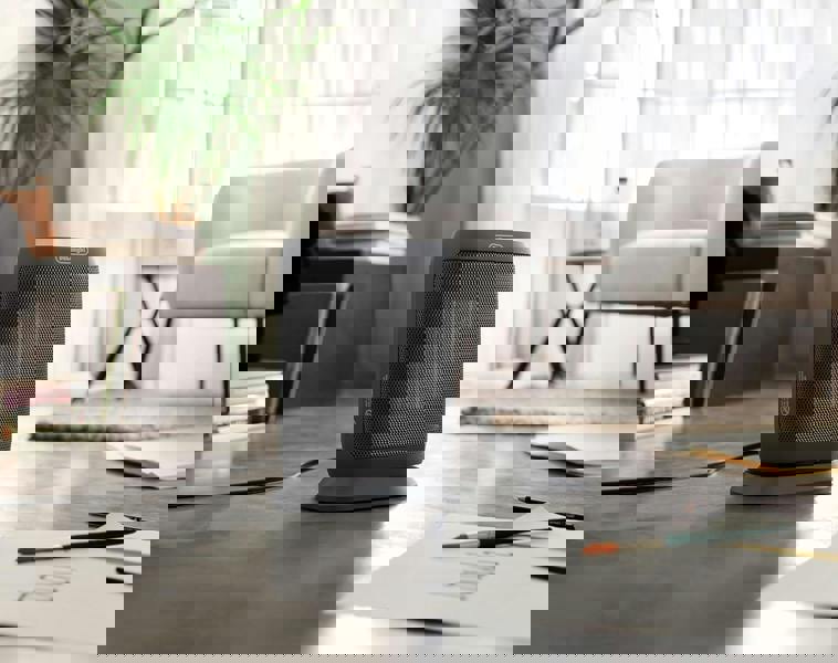 Take the chill out of those cold winter evenings with this De'Longhi fan heater. Its motorised oscillating base distributes heat to every corner of your room so there's no cold spots. The 2000 W ceramic heating element is powerful enough to heat rooms up to 60m3. Perfect for your living room or office space. And the Eco function is energy efficient so you can use it every day without worrying about the bills.