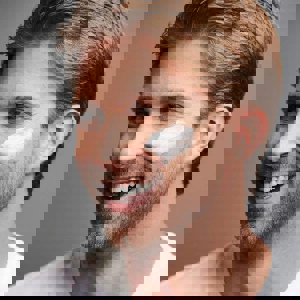 Apply over damp face and throat with light, upward strokes.