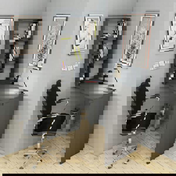 This computer desk is perfect for small spaces. Its foldable design allows it to be easily stored against a wall, saving valuable floor space. With a simple assembly process, it's a convenient and practical addition to any room. The desk is crafted from melamine-coated particleboard to help you while you are working or studying. The product will always assist you with its shelvıng unit.