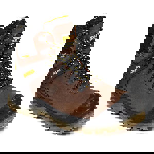 Full grain brown leather upper. Waterproof and breathable Samsung membrane inner lining. Padded tongue and collar for added comfort. Steel toe cap protection and steel midsole protection. PU comfort insole. TPU dual density outsole. Anti-Scuff toe guard. TPU Heel support system. A high quality waterproof S3 safety work boot from DeWALT.