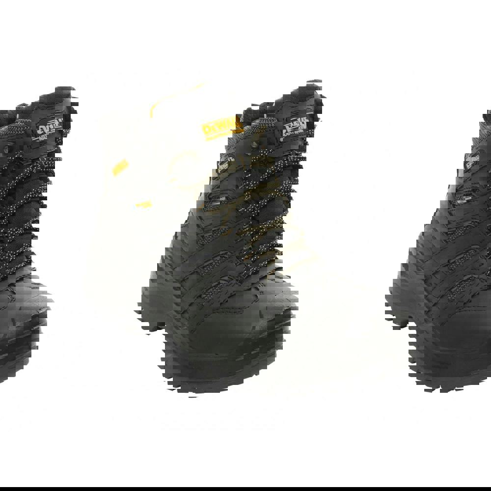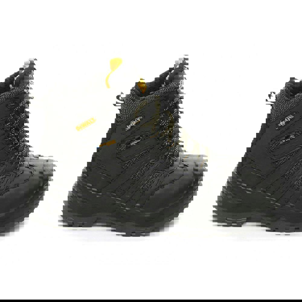 DEWALT Murray Safety Boots combine a leather and mesh upper with a waterproof, breathable build. Manufactured with a steel toe cap and steel midsole protection, they meet CE EN ISO 20345-2011 standards and carry an S7 safety rating. The boot is made wider than standard for a more generous fit.