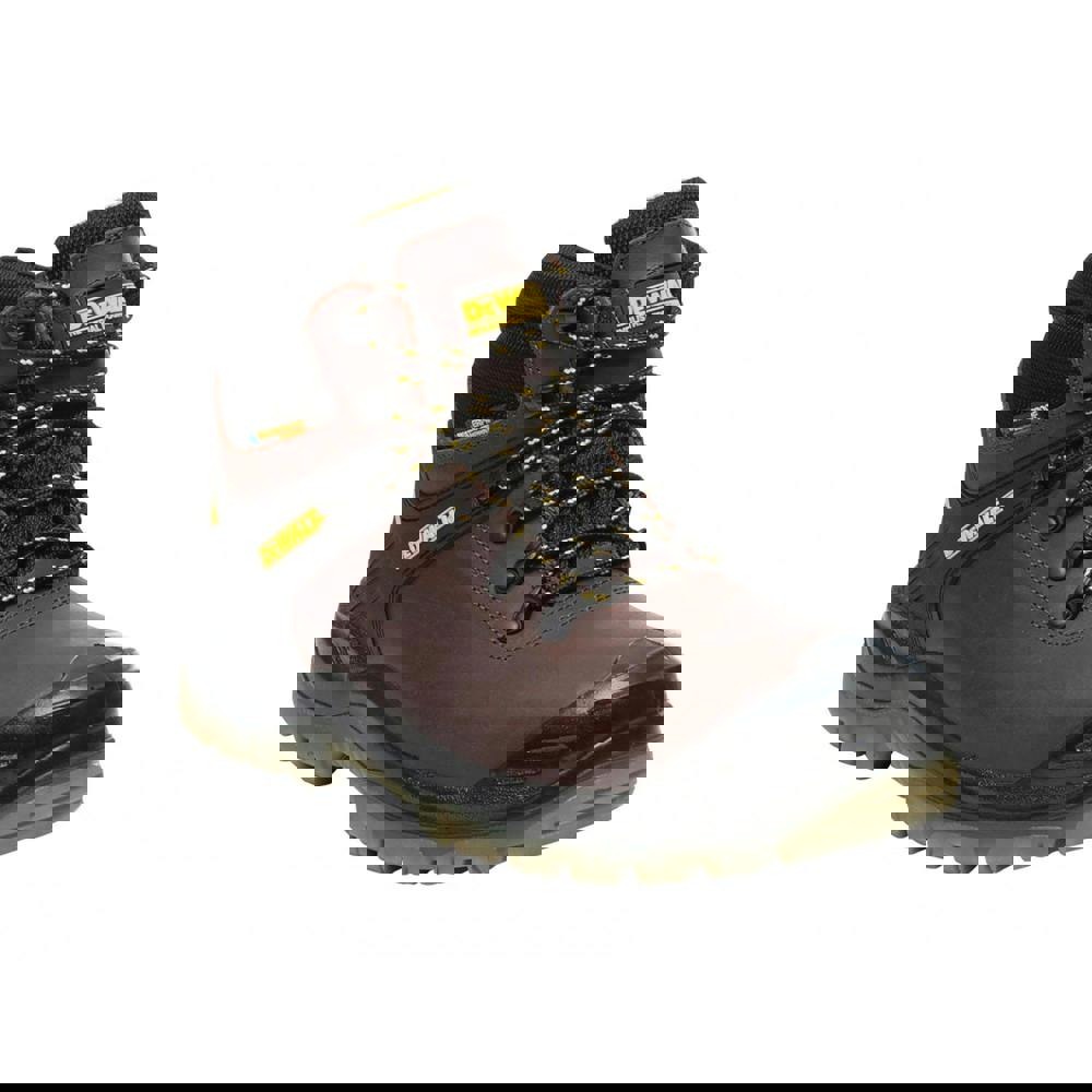 DEWALT Newark waterproof safety hiker boots are built with a full grain leather upper and a Samsung waterproof, breathable membrane. A PU comfort insole sits inside, while the lightweight, flexible construction includes shock absorption for added support during wear.