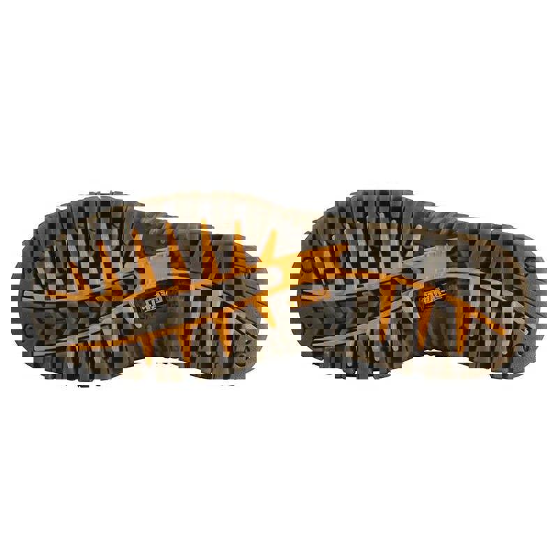 A TPU dual density outsole provides anti-static properties, while the padded tongue and collar add comfort. This pair conforms to CE EN ISO 20345-2011, with an S3-WR safety rating and an SRA slip rating. Supplied in tan with a full grain tan leather upper.