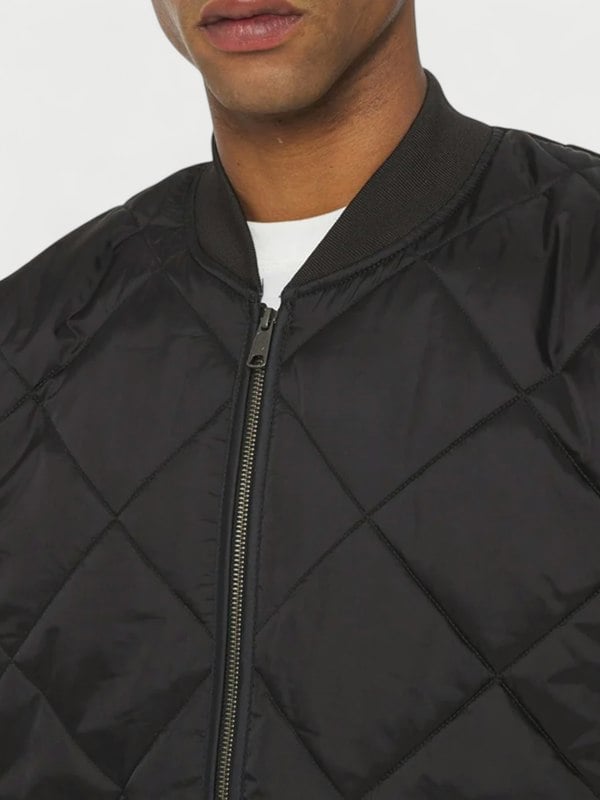 The Dickies Diamond Quilted Bomber Jacket in black combines classic style with practical warmth.