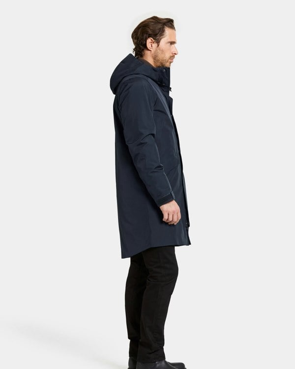 Aiden is a padded parka for men, designed for both style and function. It is water and windproof with taped seams and made from a breathable material, making it ideal for daily use. The parka has a straight silhouette and is equipped with many practical pockets, including hand warmer pockets, buttoned chest pockets, and an inner pocket with a zip.